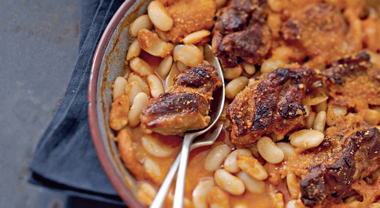 - Intégrez le jus de cuisson des haricots et complétez avec de l'eau jusqu'à hauteur. Laissez mijoter pendant 1 heure à feu moyen.