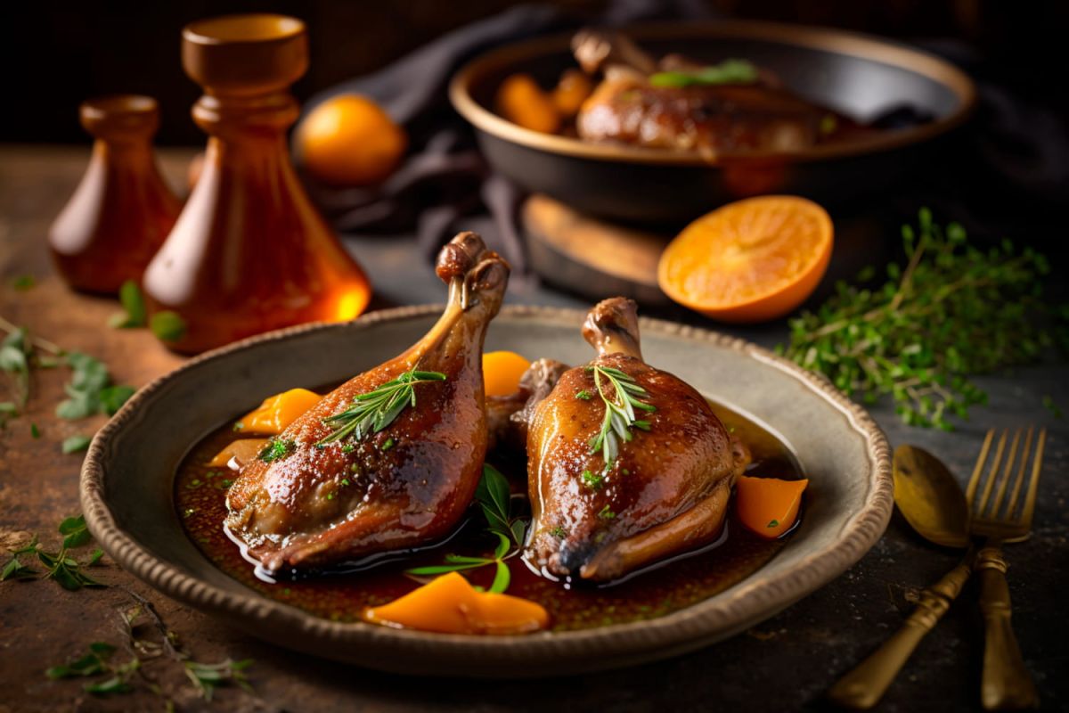 Pour les cuisses de canard confites, réduisez le temps de cuisson à environ 15 minutes, de préférence peau vers le haut. Pour une peau croustillante, passez-les sous le grill en fin de cuisson.