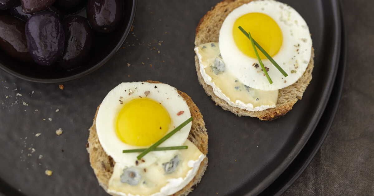 4. Étalez le mélange au fromage bleu sur les tranches de pain grillées.
