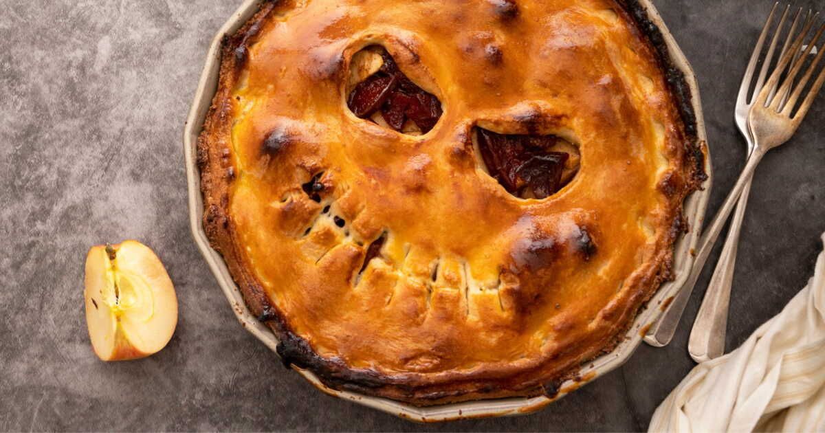 Cette tarte aux pommes d'Halloween ne manquera pas de séduire vos invités, alliant l’artistique à la gourmandise. À déguster sans modération !