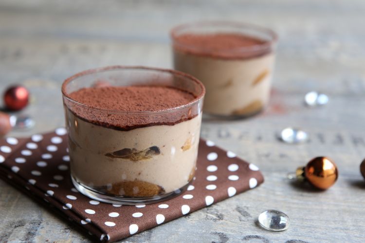 - Disposez une première couche de biscuits au fond des verrines, puis ajoutez deux cuillères généreuses de crème au mascarpone.
